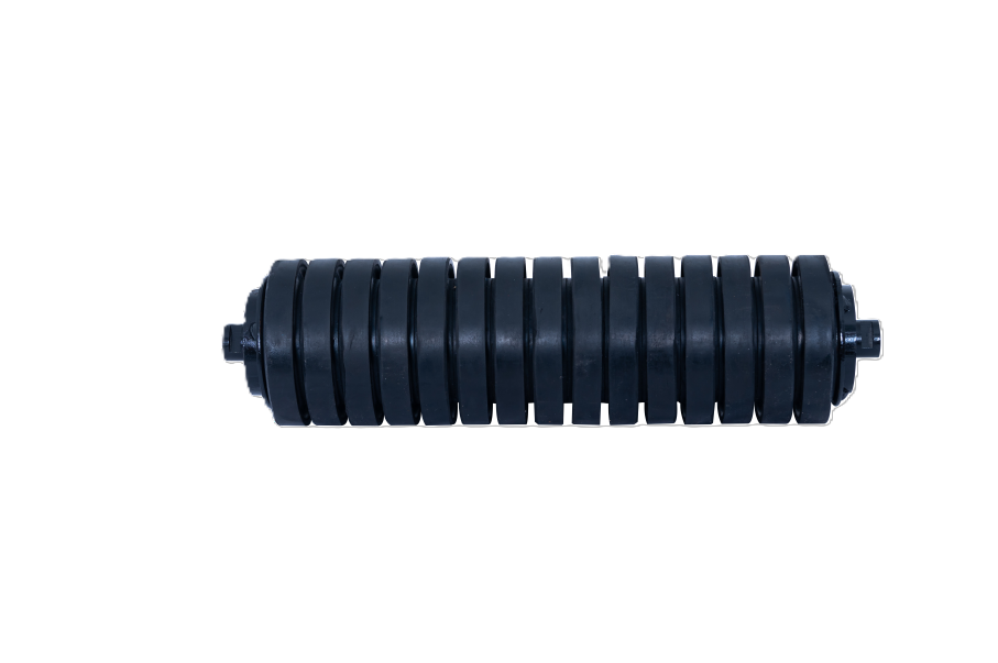Транспортна трака у пуферу Идлер се углавном користи за решавање дијела материјала који прима каиш транспортне траке. Унутрашња цев дебеле зида и гумени прстен могу издржати утицај високог интензитета. Након дизајна, они могу дуго да издрже утицај материјала у одељку који примају материјал транспортера и без деформације.