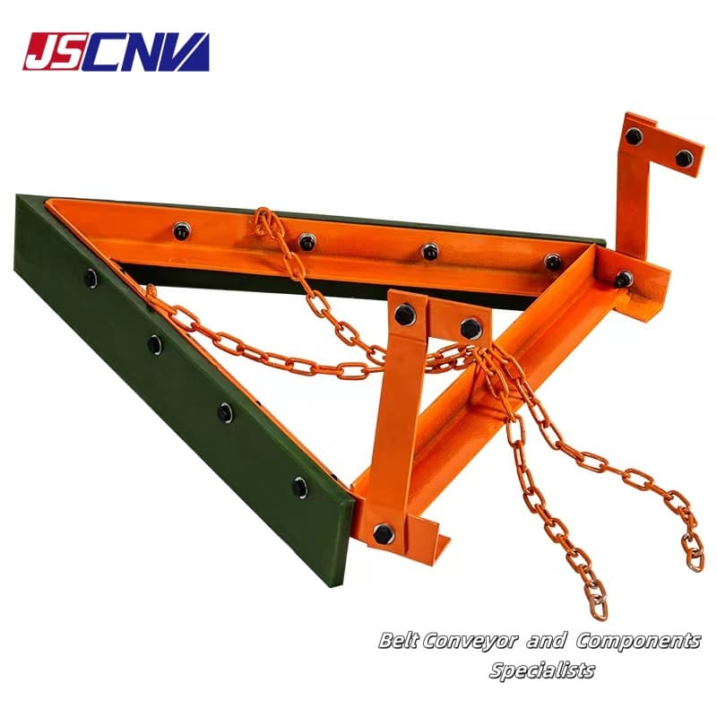 Чистач ремена В-плов је врста чистача повратног ремена. Углавном се користи испред ременице савијања транспортера траке и испред тешког уређаја за вертикално затезање. Има карактеристике отпорности на киселине и алкалије, отпоран на пламен и антистатик, високу отпорност на хабање и не оштећује појас. Сечиво је направљено од полиуретана високе чврстоће, дизајн у облику слова В обезбеђује чистоћу појаса, а аутоматски гравитациони дизајн обезбеђује аутоматску компензацију када се сечиво истроши.